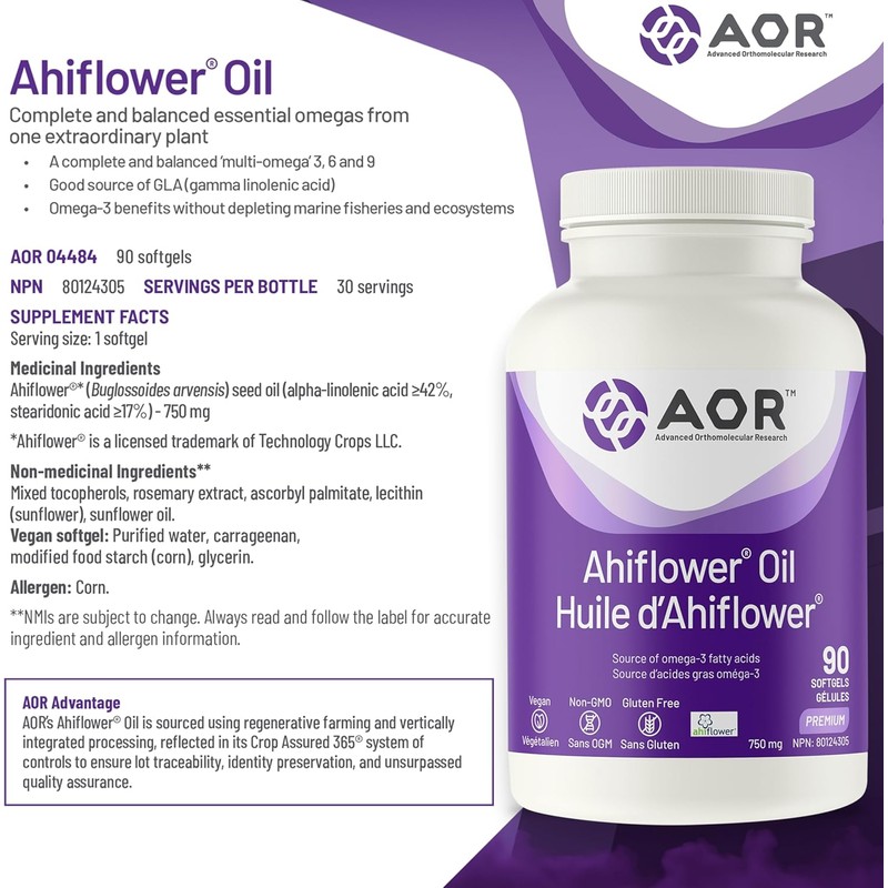 Experience the natural goodness of AOR Ahiflower Oil and support your body's wellness journey with this comprehensive supplement.