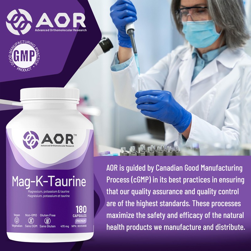 - Commitment to Purity and Quality: Each AOR Mag-K-Taurine capsule is non-GMO, vegan, and gluten-free, offering a clean supplement that fits into health-conscious lifestyles. Known for their commitment to excellence, AOR ensures every product meets strict standards for quality and safety. Choose this trusted option for a reliable addition to your daily regimen.