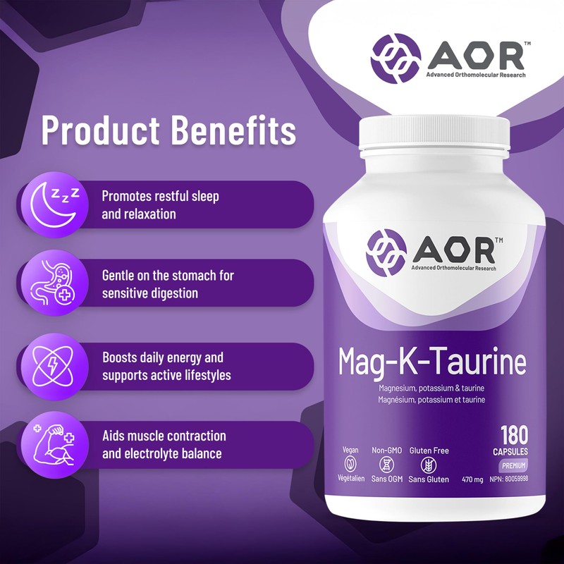 - Enhanced Cardiovascular Support: AOR Mag-K-Taurine combines magnesium, potassium, and taurine to promote overall wellness, helping you stay active and energized. Designed with purity in mind, this supplement supports daily vitality and is backed by third-party testing for ensure quality. With glowing feedback from long-term users, it's an excellent choice for those prioritizing proactive care.