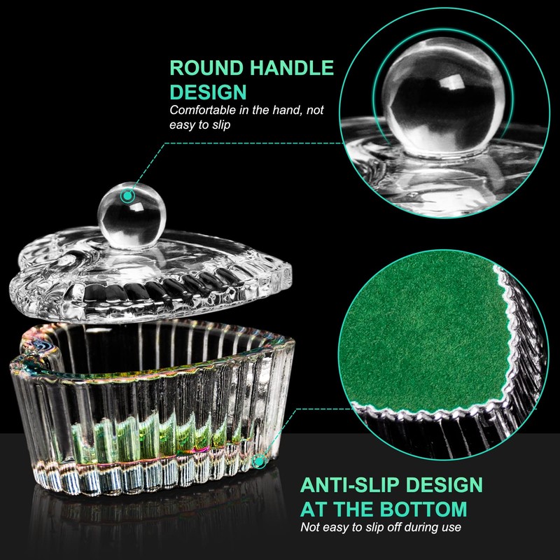 - What You Get--The dappen dish for acrylic nails package include 2pcs nails tips art dappen monomer dish with lid,which is designed with heart shape that makes your nail crystal bowl look more beautiful and cute.