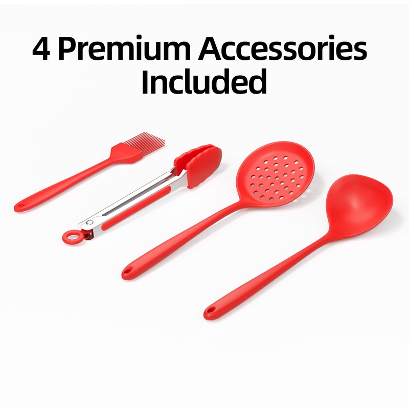 - 🎁 Free 4-Piece Tool Kit + Effortless Cleanup – Includes soup ladle, strainer, oil brush, and food tongs. Non-stick coating and dishwasher-safe parts make cleanup a breeze.