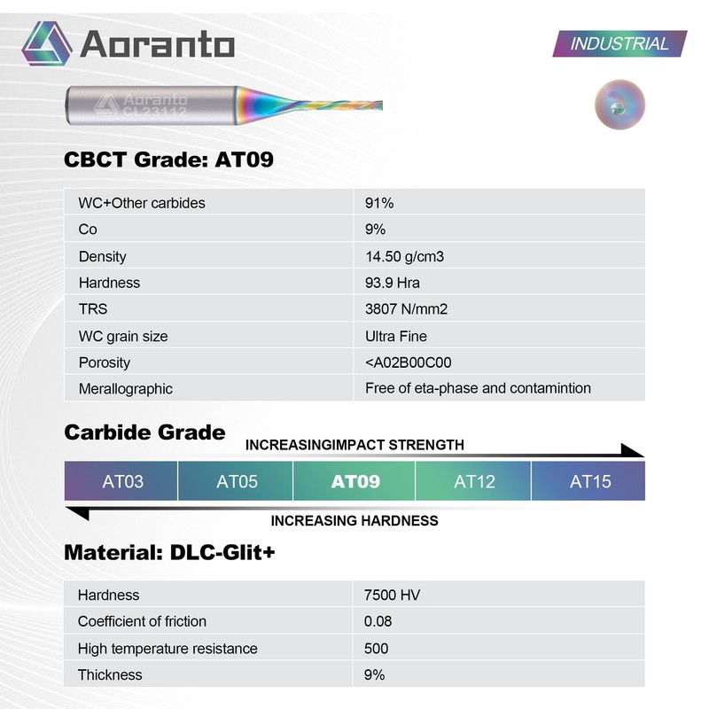 - Premium Coating: The DLC-Glit+ coating with an extreme 7500HV nanohardness and 500℃ heat resistance, which maintains the sharpness and lubricity of the tool's cutting edge
