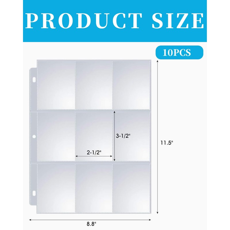 - ✅️[Widely used] Pocket trading cards are compatible with most anime trading cards, suitable for playing cards, football cards, baseball cards, and also great for coupons, mini photos, business cards, other small cards and so on. On the left side of our trading card sleeve there are 11 holes for standard A4 folders.