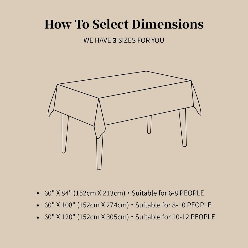 - 【VALUE PACK】You will get 60''W x 108''L table clothes for 6-foot rectangle tables, enough for 8-10 seat rectangle or oval table needs by better dropping effect. Please measure your table size and according to the size guiding chart before purchasing