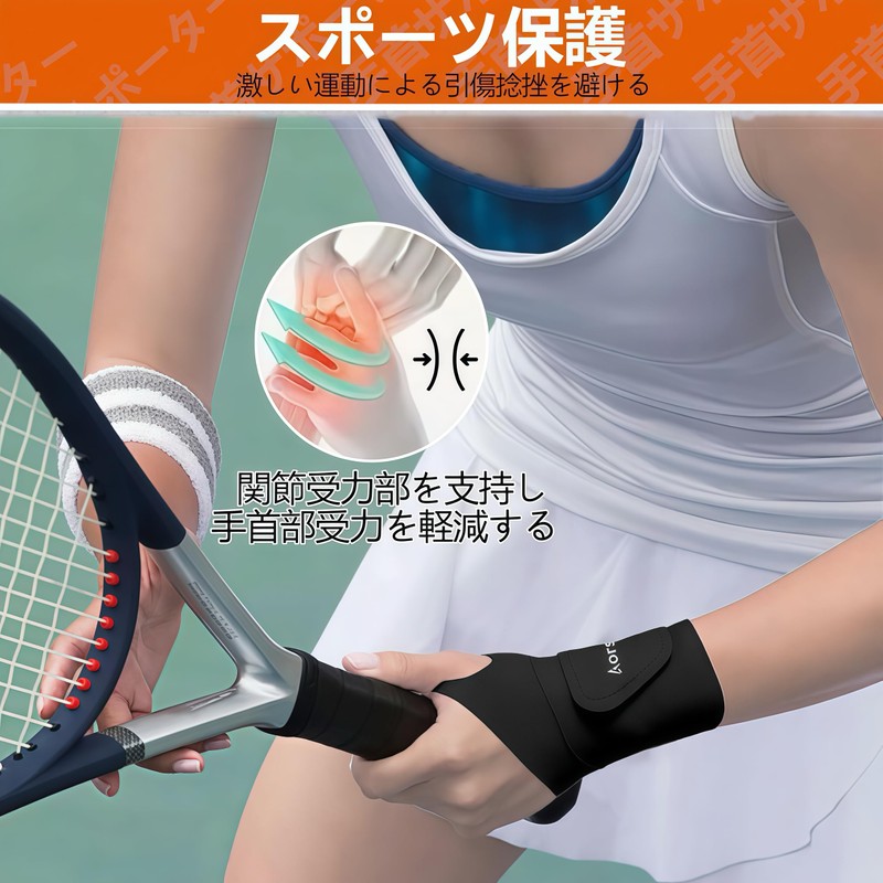 Aorsky 手首 サポーター 薄手 固定 軽量サポート 0.99mm 10g【理学療法士監修 】 圧力調節 通気性 吸汗 速乾 筋トレ スポッツ全般 育児 家事 仕事 スマホ/パソコン操作 日常生活 男女兼用 左右兼用 四季兼用 フリーサイズ くろ 2枚
