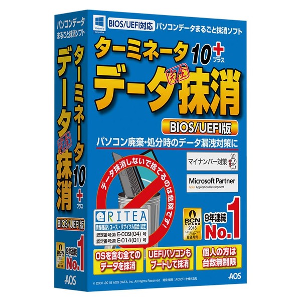 AOSデータ ターミネータ10 plus データ完全抹消 BIOS/UEFI版【パソコンの廃棄・リサイクル時にHDDやSSDのデータを丸ごと消去する情報漏...