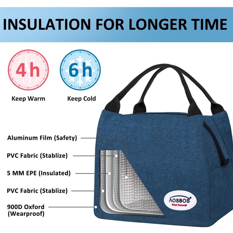 Heat preservation function - You can put the hot drink like coffee, milk or baby bottle in it, our Aosbos lunch bag can keep the drinks warm for 4 hours