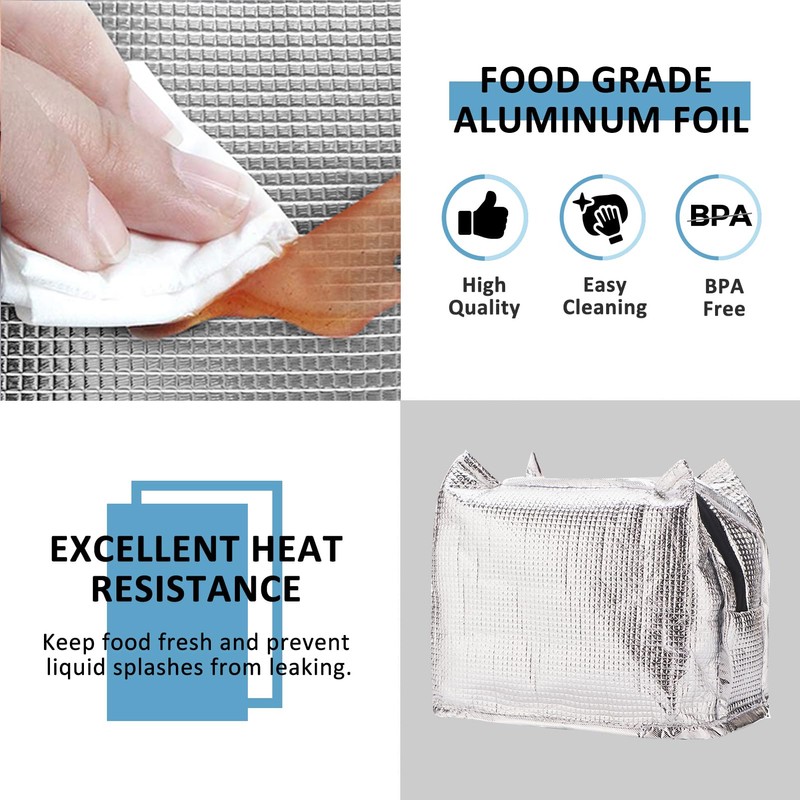 - UPGRADED MATERIAL– Made of premium water-resistant 900D polyester, easy to clean; the interior linings are food grade aluminum insulation with thick EPE foams, the thermal lunch bag will offer you great warm and cold insulation performance