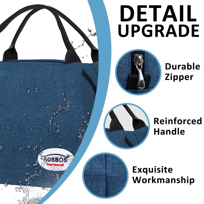 Aosbos Lunch Bags for Women Adult Insulated Meal Prep Container Cooler Bag Reusable Food Delivery Bag Blue