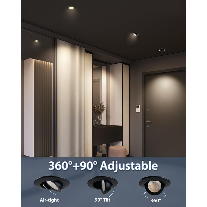- 【360°+90° Directional Adjustment】The LED recessed lighting features 360° horizontal rotation and 90° vertical tilt, letting you adjust angles to precisely highlight artwork, decor, or specific areas. A great replacement for traditional track lights, it meets directional needs with greater flexibility and fits seamlessly into various settings.