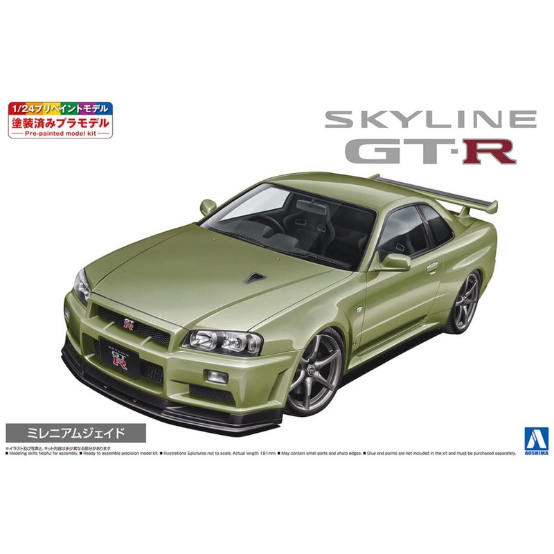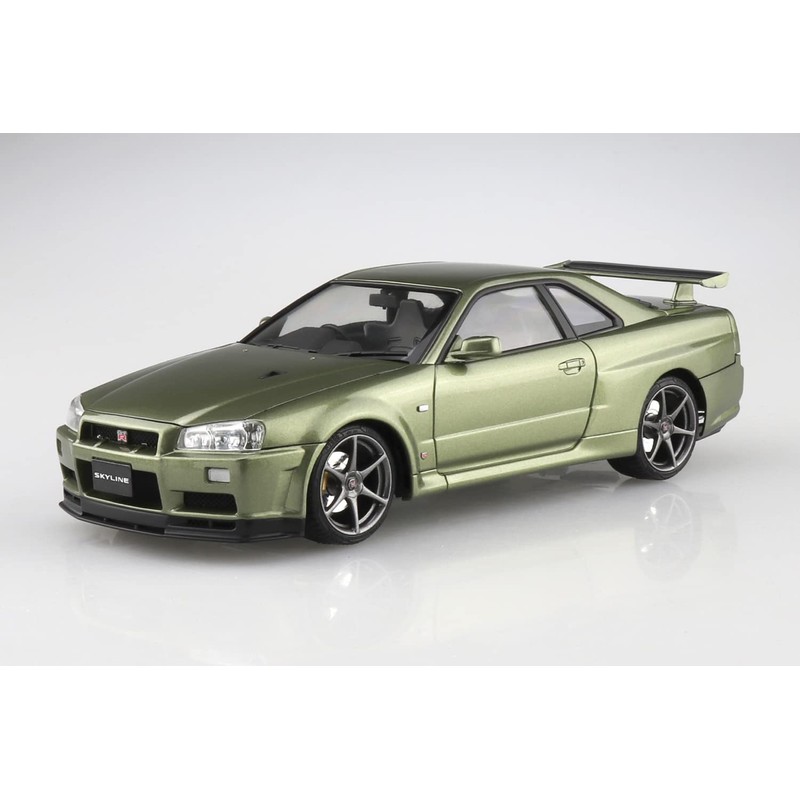 Aoshima Bunka Kyozai 1/24 Pre-Painted Model Series Nissan BNR34 Skyline GT-R V Spec II Nur'02 Millennium Jade Plastic Model 03-C