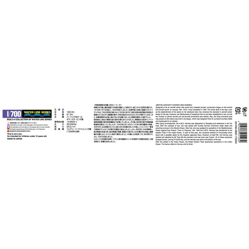 Aoshima Bunka Kyozai 1/700 Water Line Series No. 716 British Navy Aircraft Carrier HMS Hermies Indian Ceylon Offshore Plastic Model