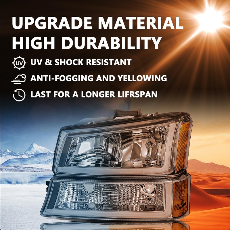 - 【VEHICLE COMPATIBILITY】Headlights Assembly Compatible With Chevy Silverado 1500 2500 3500 HD Models 2003-2006/Compatible with Chevy Avalanche 1500 2500 2003-2006(Fits Models without Cladding Only)/Compatible with Silverado 1500 2500 3500 2007(Fits Models with Halogen Headlights Only).
