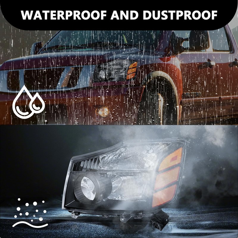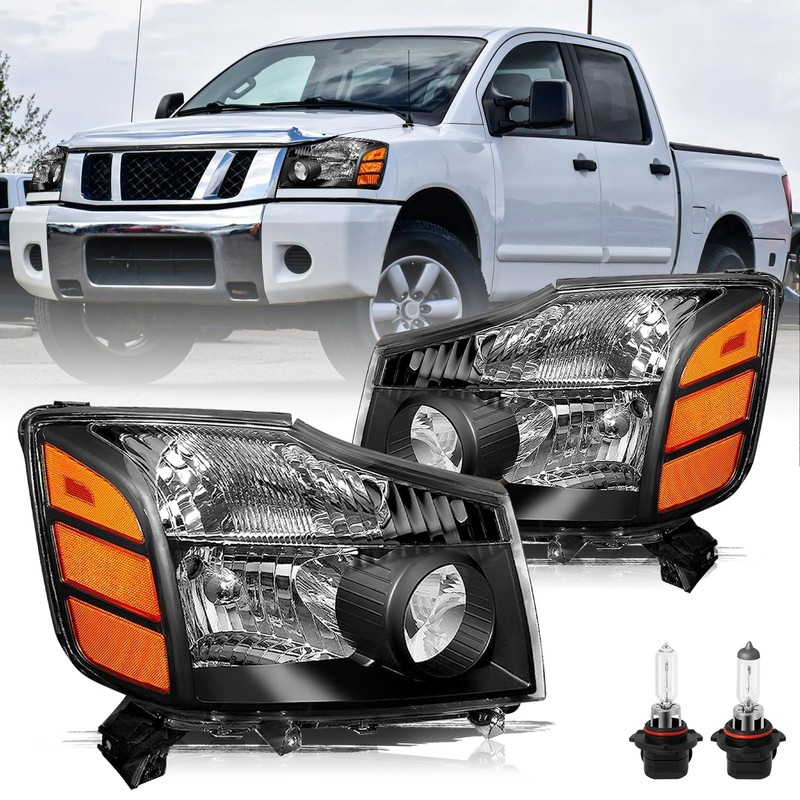 - 【VEHICLE COMPATIBILITY】These headlights compatible with 2004 2005 2006 2007 2008 2009 2010 2011 2012 2013 2014 2015 Nissan Titan.Fit for 2004 Nissan Pathfinder Armada and 2005 2006 2007 Nissan Armada. Light Source: Halogen