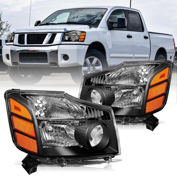 - 【VEHICLE COMPATIBILITY】These headlights compatible with 2004 2005 2006 2007 2008 2009 2010 2011 2012 2013 2014 2015 Nissan Titan.Fit for 2004 Nissan Pathfinder Armada and 2005 2006 2007 Nissan Armada. Light Source: Halogen