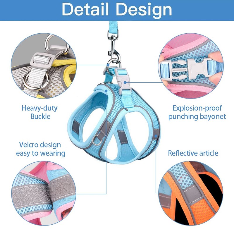 Utilizes adjustable mesh harness for a comfortable wearing experience and provides additional security, ensuring peace of mind when taking your pet outdoors.