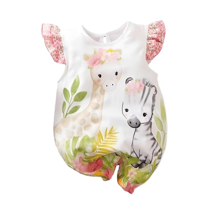 Aoswep - Cartoon Giraffe With Zebra Printed Baby Romper (6-9 Months)