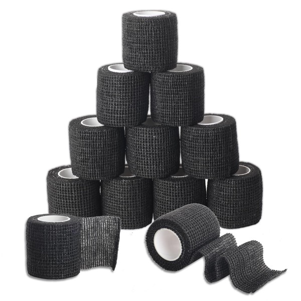 Aotfusd 12 Rollen Selbstklebender Verband, Elastische Binde Bandage Pflaster Rolle Verbandsmaterial, Fixierbinde Haftbandage Selbstklebend für Sport, Handgelenk, 5cm x 4.5m (Schwarz)