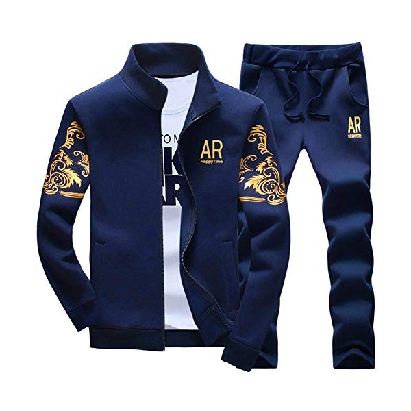 AOTORR Men's Casual Sweat Suit Set Full Zip Tracksuit Jogging Running Sportswear Navy L