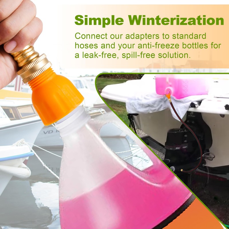 - 【Simplify Winterization with Our Kit】 includes adapter and hose. The adapter attaches to the antifreeze bottle, while the 3-foot, 3/4-inch garden hose attaches to the winterization port with a twist-on connector to provide a seamless, hassle-free winterization process for RVs, trailers,campers, boats and ships.