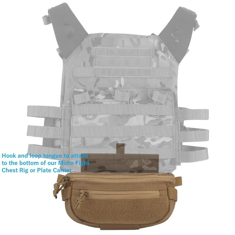 - The Admin Pouch has a hook and loop tongue to attach to the bottom of Chest Rig or Tactical Vest,Additionally, the bag comes with a removable 1" waist strap to wear fanny pack style as well.When worn fanny pack style the hook and loop tongue will fold away, loop side toward the body, for comfort.
