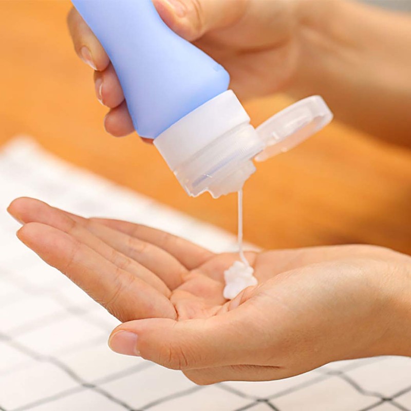 - Botellas de viaje de silicona: hechas de silicona de grado alimenticio, olor no tóxico. Material de silicona flexible, fácil de apretar. Con gran capacidad de 89 ml en la botella.