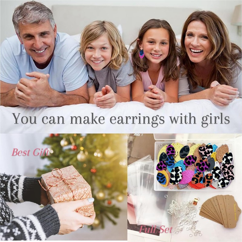 - 🌺【Full Set】This earrings making kit contains materials, tools and packings, which can make 96 one-layer faux leather earrings.