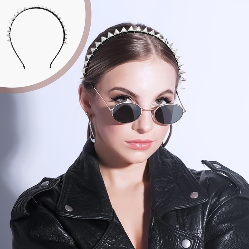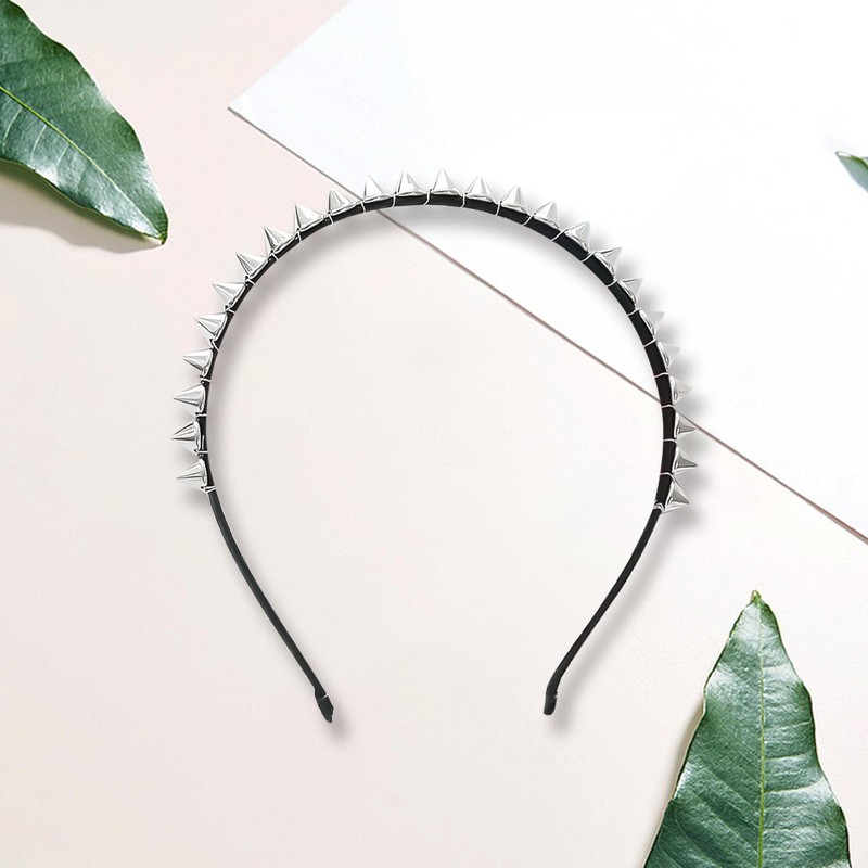 AOVNA Silver Metal Stud Rivet Spike Headband Lightweight Flexible Women Headwear Aliceband Punk Girl Easy to Wear Eye-Catching