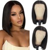AOWVUTS Short Bob Wigs Wear and Go Glueless Wigs 180% Density Straight Bob Wig 5x5 Lace Frontal Wig Synthetic Wig Natural Black Transparent Lace Front Wigs Pre Plucked