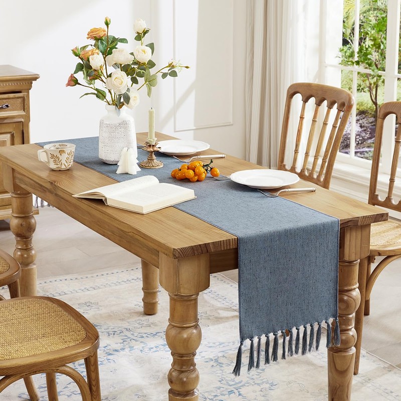 - Design and Size- Aoztio farmhouse rustic cotton linen table runner has a simple appearance and is of high quality. The simple design style and handmade tassels make it eye-catching in different occasions. Table Runners measures 13 inchs widths, we offer a wide range of lengths: 36、48、60、72、90、108 inches(Size does not include tassels, there will be a few centimeters error due to handmade tassels).
