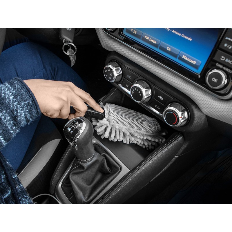 - Handy cleaning duster with soft chenille threads for vehicle interior cleaning.