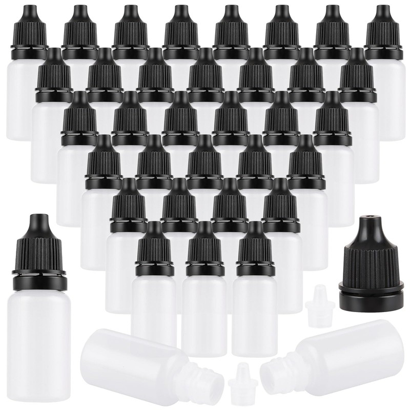 - Our 10ml mini plastic bottles are perfect for storing eye drops and ear drops for everyday use. In addition, they can be used to dispense and hold other types of liquids, including inks, paints, glues, essential oils, saline, flavours and more for precision filling or other applications.