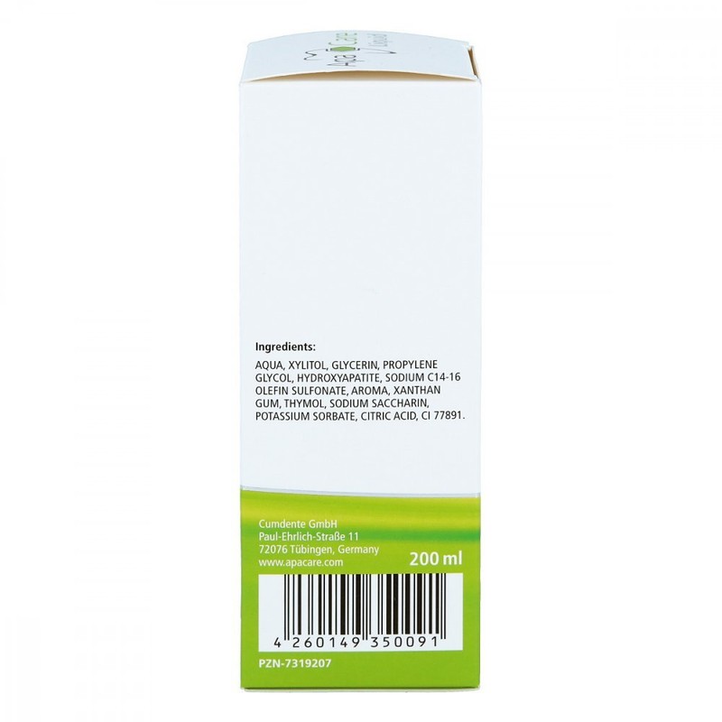• ApaCare Liquid contains soothing essential oils that prevent periodontal disease and sustainably reduce oral bacteria.