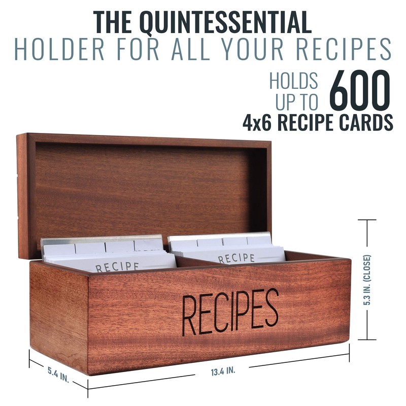 - KEEP IT IN THE FAMILY: This wood recipe box is expertly made to hold up to 600 4x6 recipe cards, giving you a family heirloom in each of these exquisite boxes. Archive your family's best-kept secrets!