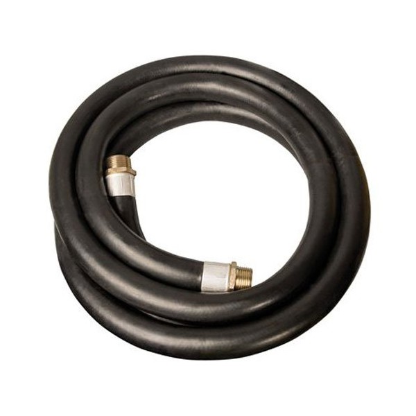 Apache synthetic yarn farm fuel transfer hose assembly with static wire required for use with 12 or 110 volt "Electric" pumps. Recommended for dispensing gasoline, up to 15 percent ethanol, diesel fuel, kerosene, and oil. Not recommended for bio-diesel. Construction: oil resistant tube/cover. Spiral reinforced with synthetic yarn. Includes static wire built into hose wall. Assemblies: coupled male x male with a built in "Static Wire" to dissipate static electricity associated with electric pumps. 8-Inches internal "Spring Guards" on each end, prevents the hose from kinking at the coupling, extending the life of the hose three to four times.