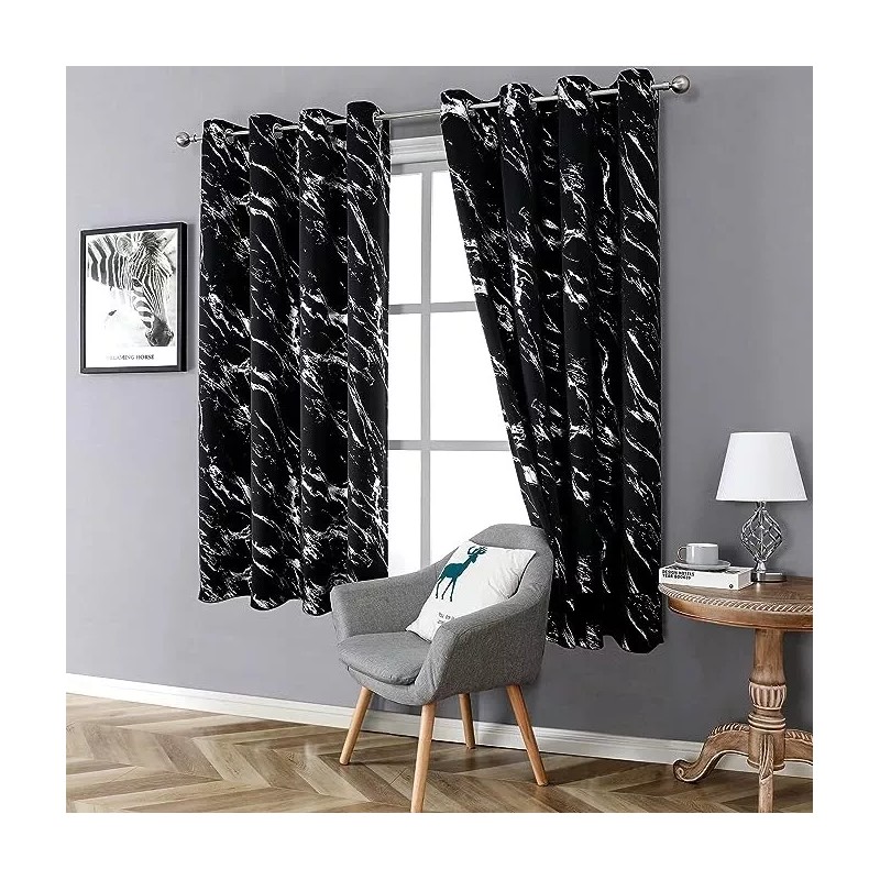 Natural Design: Inspired by the water/plant of nature, bold and dramatic gold/silver foiled pattern on black/green/silver blackout curtains shows the modern aesthetics, to add an elegant and luxury touch to your bedroom or living room. Set of 2 grommet curtain panels. Each blackout curtain panel has 8 stainless steel grommets (1.6 inches inner diameter) on top, fit for most standard curtain rods. Easy to install and hang, and slide smoothly.