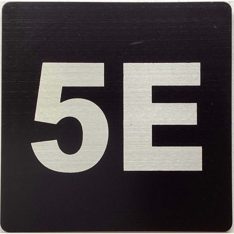 Apartment number 5E sign - UNIT NUMBER 5E SIGN/SUITE 5E SIGN (BLACK, SIZE 4x4 inch, DOUBLE SIDED TAPE) -Broadway Line