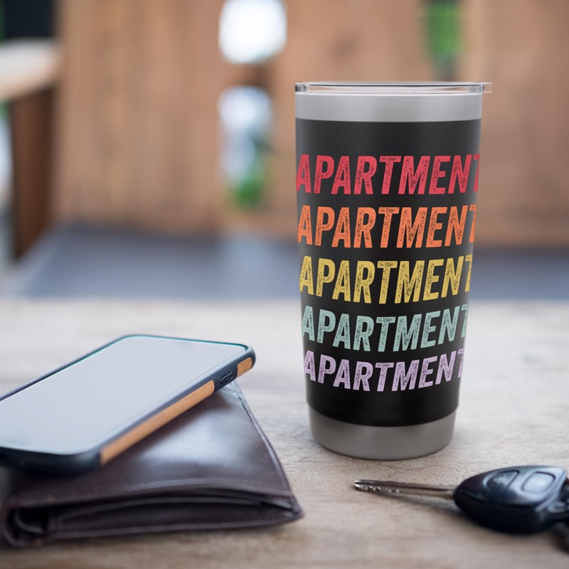 • The designs repeats the word Apartment, boldly displaying it for all to see and proclaiming your interest in Apartment, making is the perfect Apartment gift.