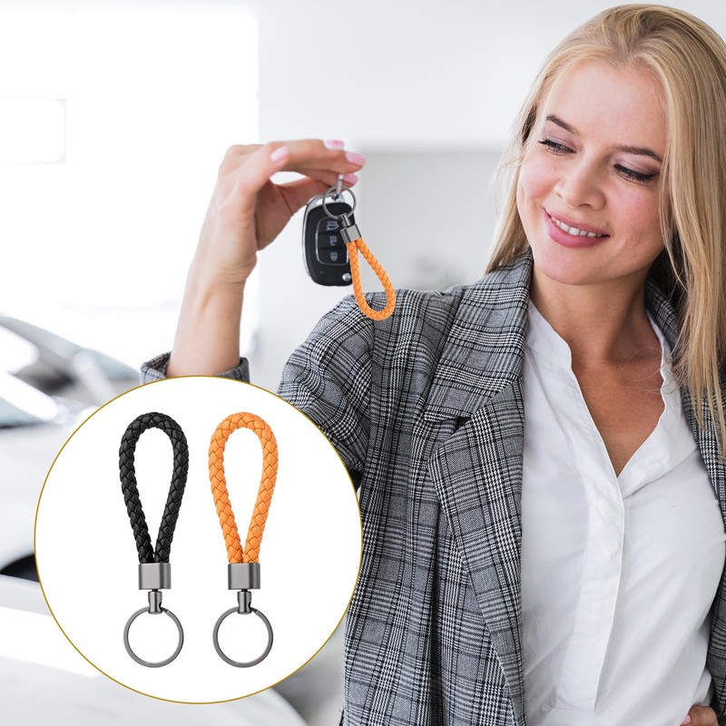 - Package Includes: You will receive 2 pieces of handwoven braided leather keychain in different colors: black and orange. Bright color can make it easier to sort and distinguish your keys and make your car keychain easy to find in any place.
