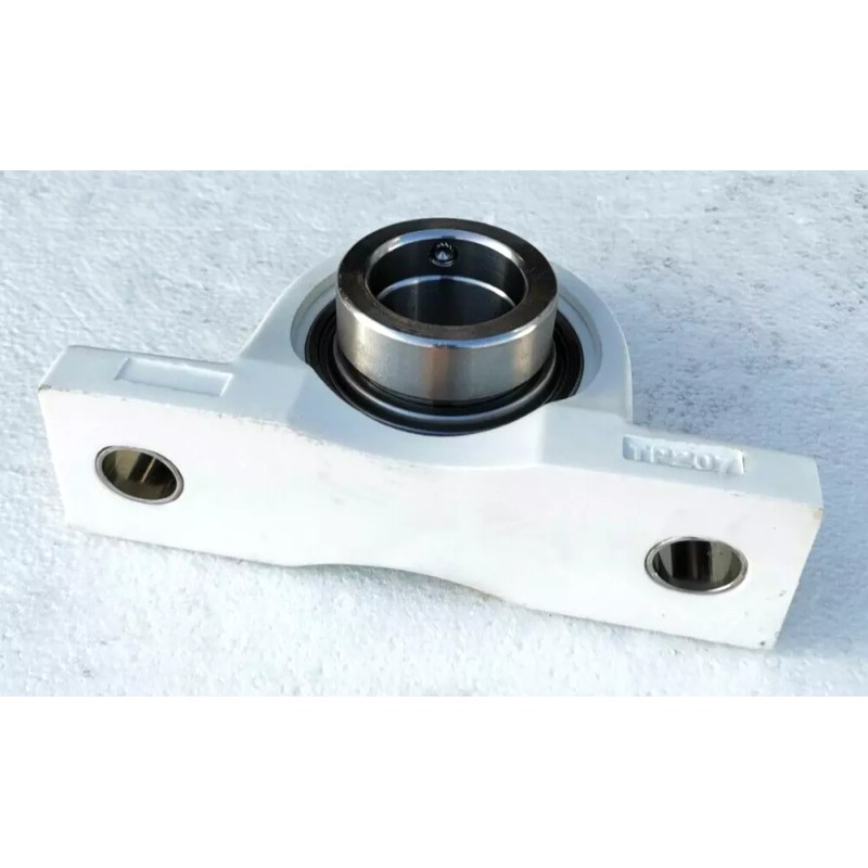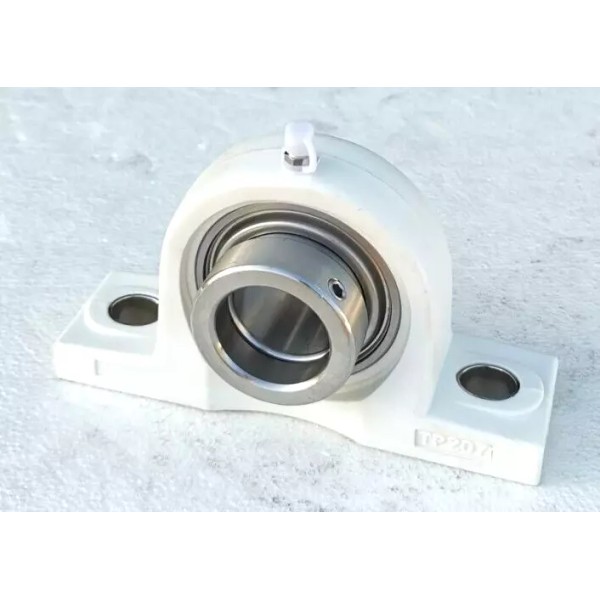 Brand New pillow block, in high quality stainless steel material, Precision class and low noise, with eccentric locking collar and Pure White Thermoplastic Housing, SOLID& FLAT Base. Relubricatable, Pre-filled with Food Grade grease Mobil FM-222.