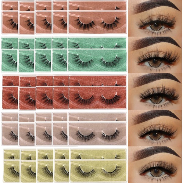 APCYUST Lashes Bulk 50 Pair Wholesale Short Lash Natural Look Fluffy Mink Eyelashes 5D Faux Mink False Lash Cat Eye Fake Eyelash Soft Wispy Strip Eye Lashes with Individual Portable Lash Pack