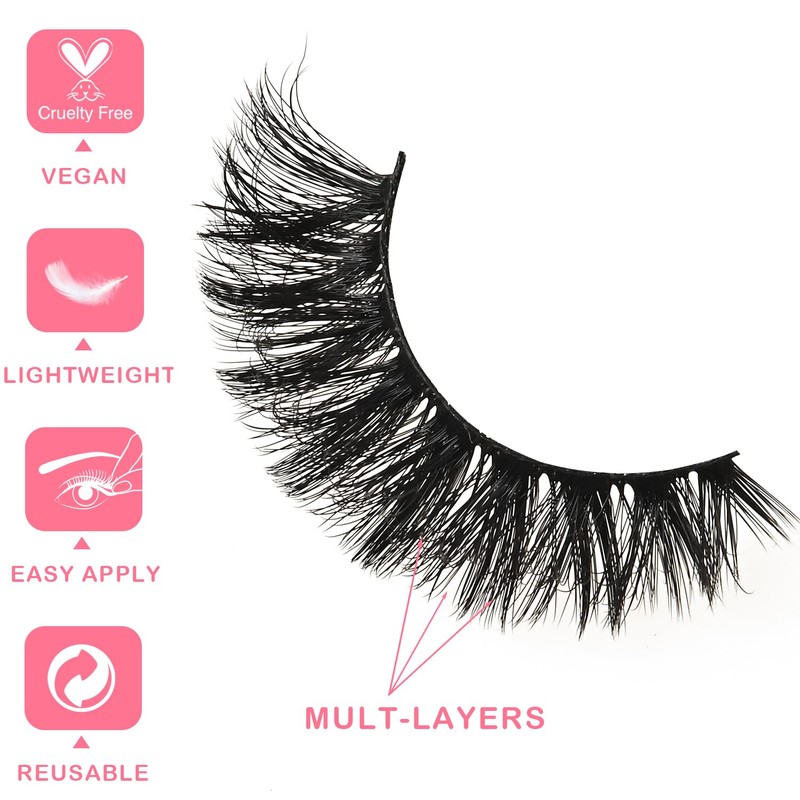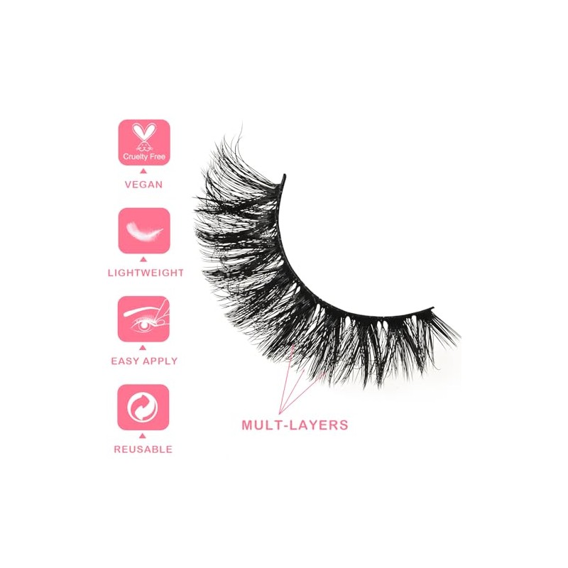- Multi-Layered Design – More Dimension, More Drama: Lashes feature layered fibers for a 3D effect that adds dimension and richness without going over the top