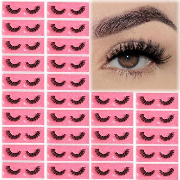 APCYUST Wispy Lashes Bulk 30 Pairs Natural Volume Eyelashes Wholesale Cat Eye Strip Lash Sets Short Thick Fluffy False Mink Eyelash Strips Full Small Fake Pestañas Postizas with Portable Pack