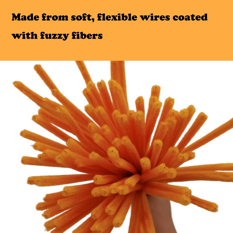 Apedoixy 100 Pieces Orange Craft Pipe Cleaners,6mm x 12inch Thick Fuzzy Chenille Stem Sticks Pipe Cleaners for Craft Art DIY Projects Decorations