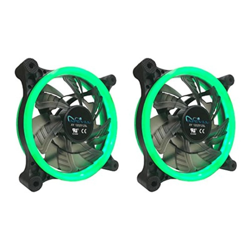 - Apevia 120mm Ultra Silent Black Case Fan w/ 32 x Green LED Lights & 8 x Anti-Vibration Rubber Pads ( 4 on Each Side) - 2 Pk