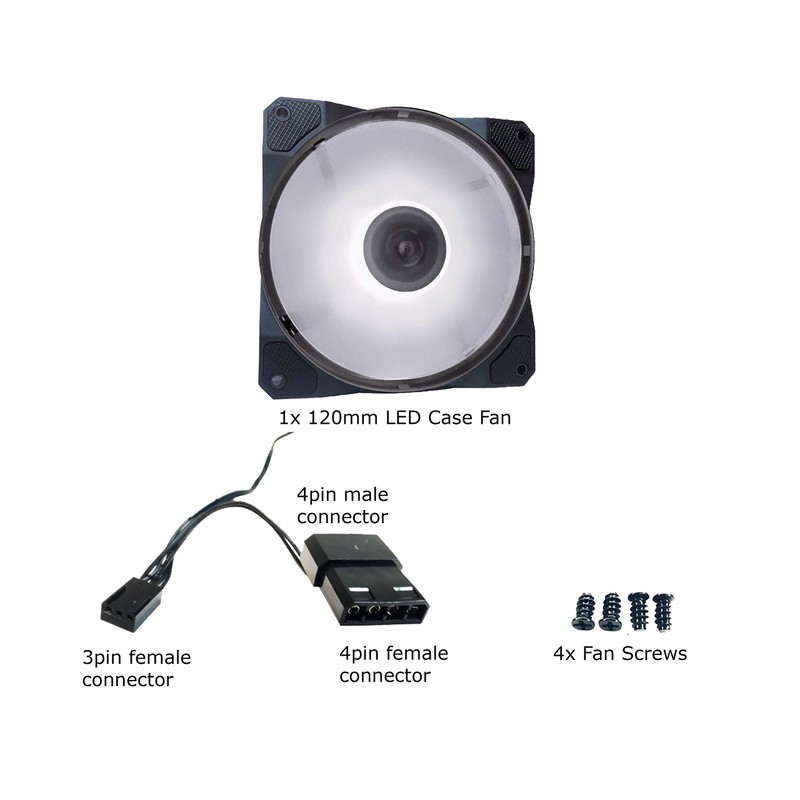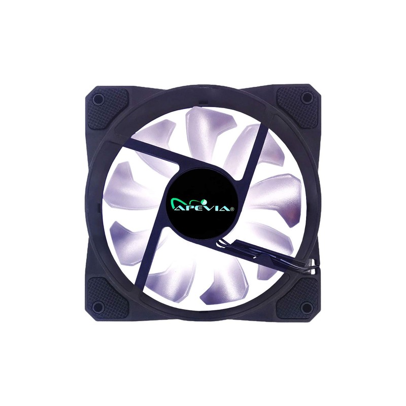 - Apevia 120mm 4pin Molex + 3pin Motherboard Ultra Silent White LED Case Fan w/ Black Frame & 9 x Transparent Blades. Perfect for gaming PCs.