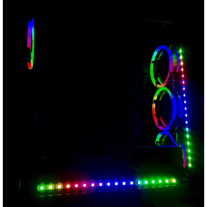 - Apevia 120mm silent case fan w/ 16x RGB color changing LED lights & 8x anti-vibration rubber pads (4 on each side) & 2 x 12" Magnetic with adhesive tape Color changing LED strips