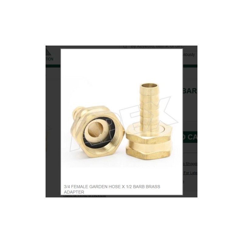 Apex 3/4 FEMALE GARDEN HOSE X 1/2 BARB BRASS ADAPTER # 1165-8