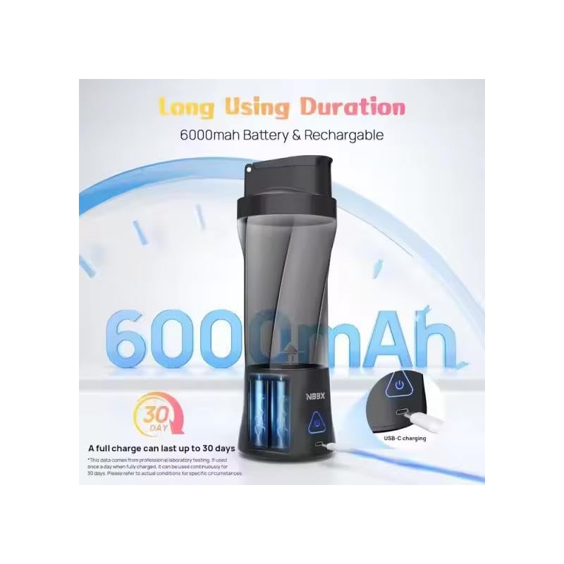 • Rechargeable and long Battery Life: The portable mixer has a built-in 2 x 3000 mAh battery with USD Type-C charging port and can be charged via laptop, power bank or car charger. A full charge is enough for up to 25 smoothies.