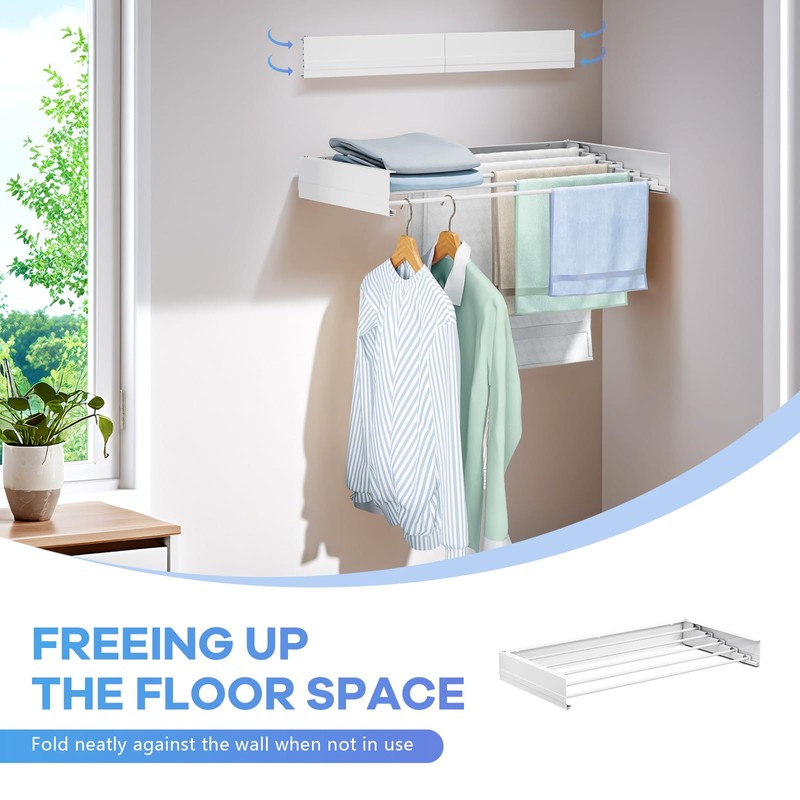 APEXCHASER Wall Mounted Clothes Drying Rack, Foldable Laundry Rack Folding, Indoor Drying Rack Clothing Collapsible, Hidden Space Saver with Wall Template 5 Rod (White)